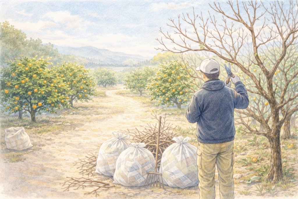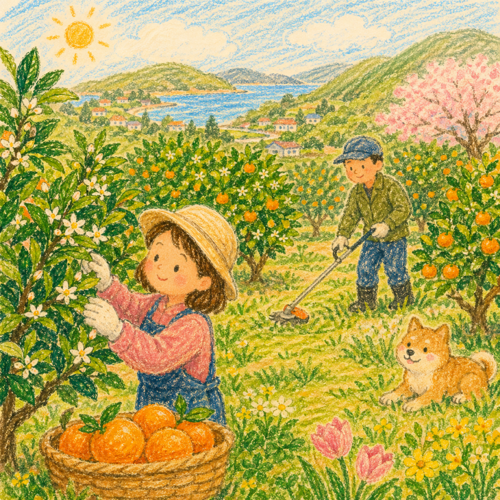 朝の畑に広がる、みかんの香りと収穫の音 株式会社P2eLabo