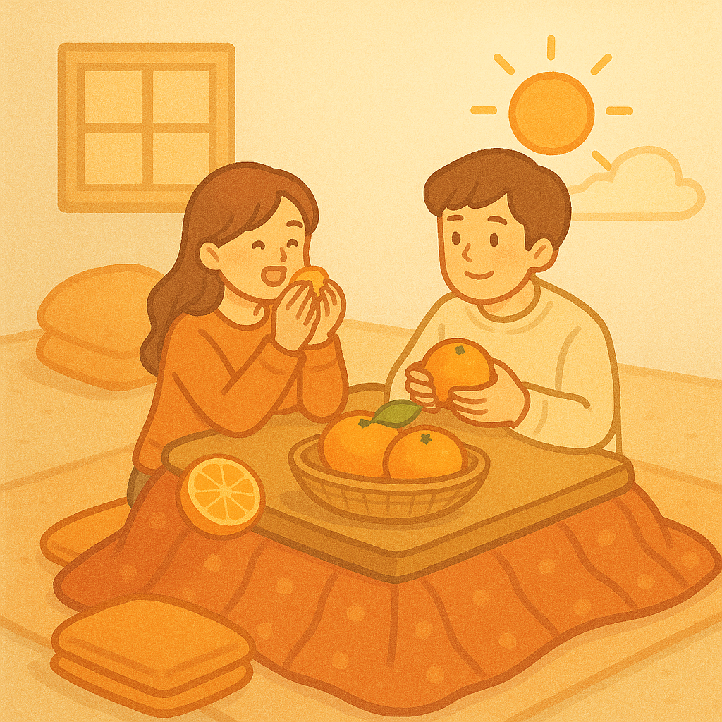 温かい空気の中で、みかんの香りがふわっと広がると、
